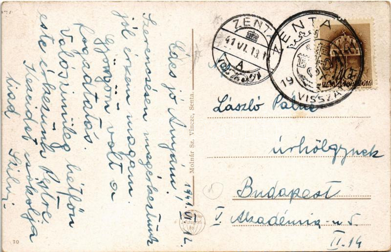 Zenta, Senta; Fő tér, kerékpáros, üzlet / main square, man on bicycle,... https://www.darabanth.com/de/39-Gross-Auktion/39.1/Ansichtskarten/Vojvodina~16046/Zenta-Senta-Fo-ter-kerekparos-uzlet-main-square-man-on-bicycle-shop-plus-1941-Zenta-vissz~II2737299