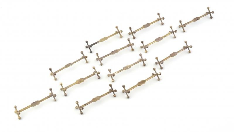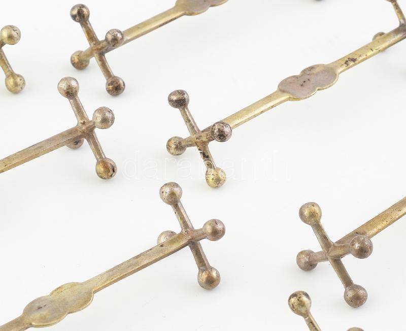 Beschreibung: Ezüst (Ag) 12 darabos késbak, jelzett: 1867-1872 közötti Diannás jelzéssel, h: 10 cm, nettó: 374 g.