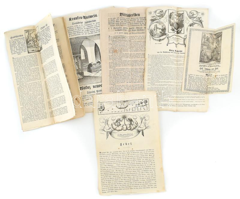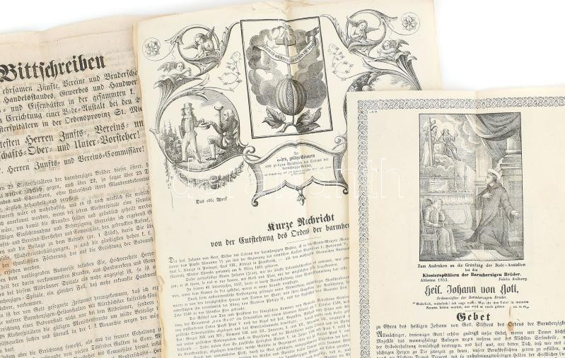 cca 1850 Az irgalmasrendi szerzetesek tevékenységéről szóló beszámolók, kimutatások, több fametszetű képpel illusztrációval, klf méretben. / 1850 10 bulletin about the activities of the Mercyful Brothers monks. With woodplate engravings