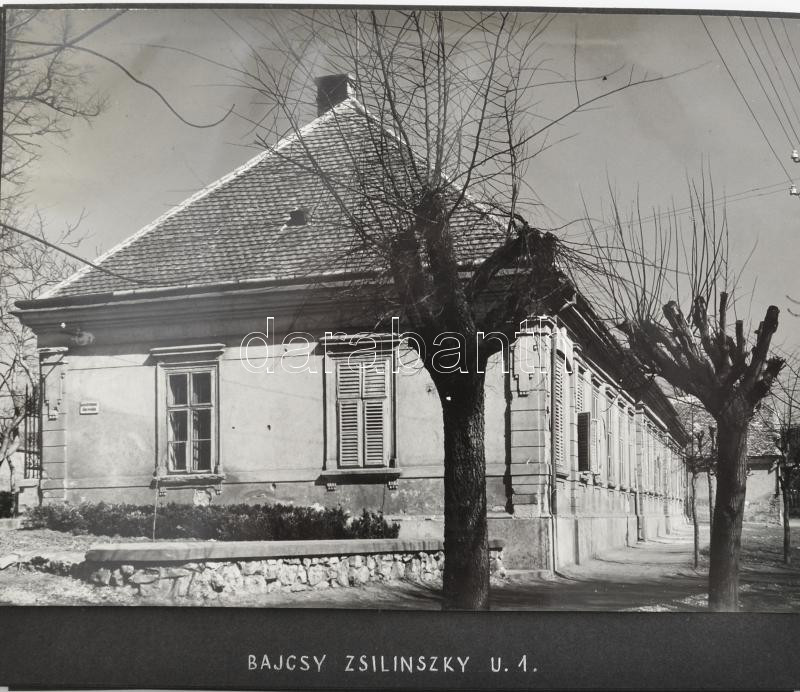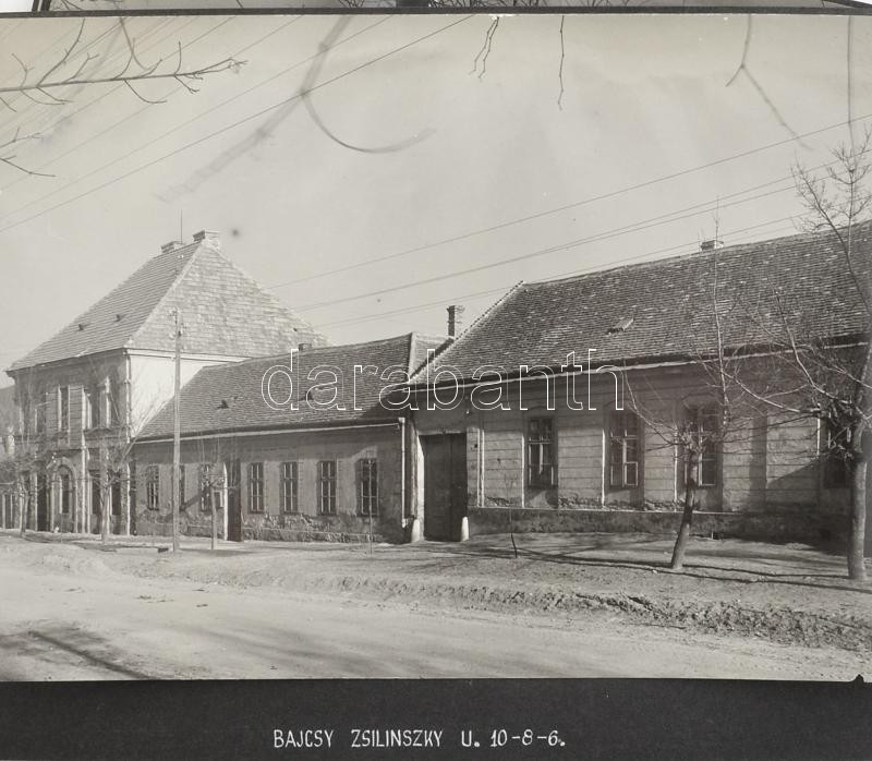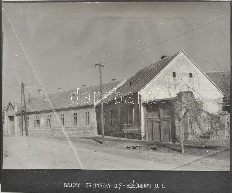 Beschreibung: cca 1945-1950 Mór várost ábrázoló 18+2 fotó kartonon, 1 fotón gyűrődésnyomokkal, 1 fotó sérült, 10x15 cm és 167x23 cm közötti méretben