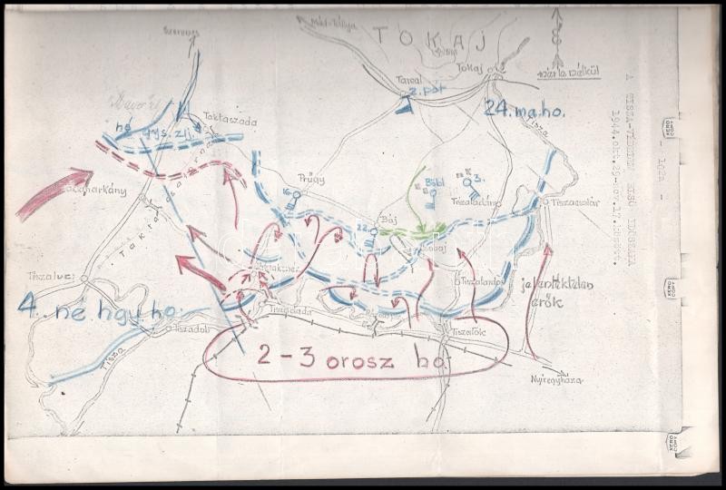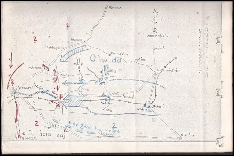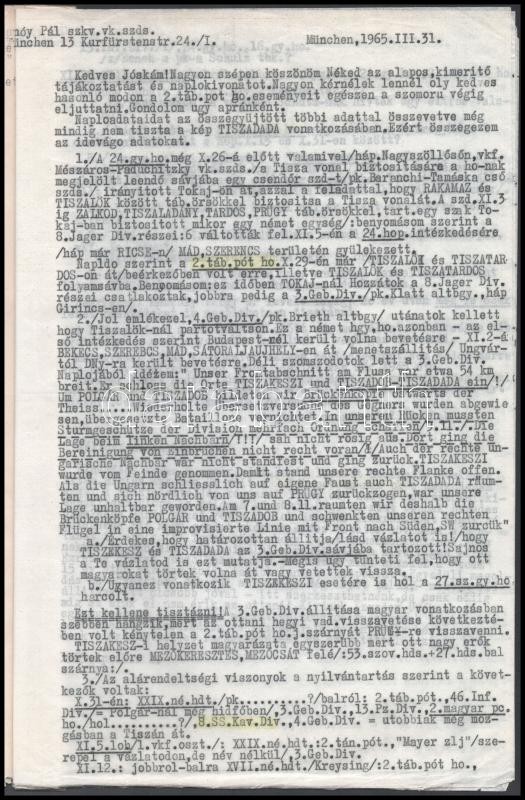1965. 1944 A 2. tábori póthadosztály harcai. Tisza-védelem 1944. novembertől- decemberig. Darnoy Kálmán a Hadak útján c. emigráns katonai újság szerkesztőjének és Keményffy József ezredes gépiratos tanulmánya, levélváltások útján 17 oldal gépelt irat és 5 oldal térképvázlap