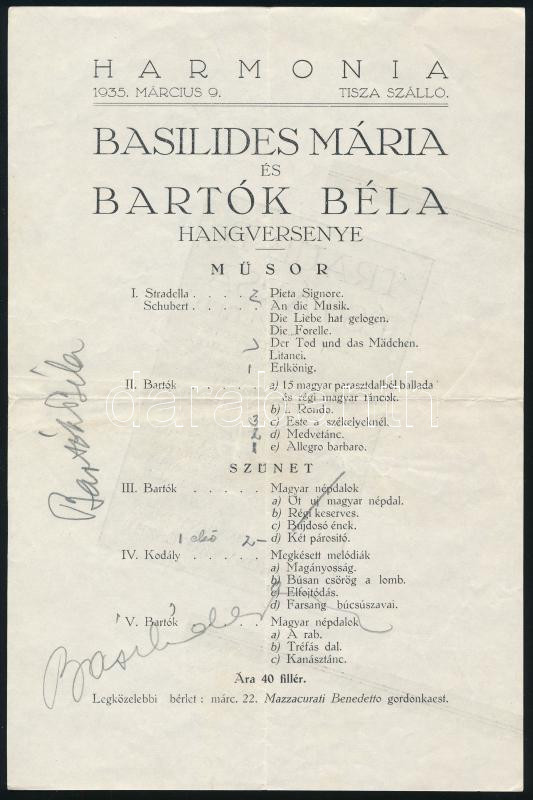 1935 Basilides Mária és Bartók Béla hangversenyének meghívója és műsor... https://www.darabanth.com/de/39-Gross-Auktion/39.1/Kunst-Skulpturen-Historische-Dokumenten/Signatur~16379/1935-Basilides-Maria-es-Bartok-Bela-hangversenyenek-meghivoja-es-musora-Bartok-es-Basilid~II2731696