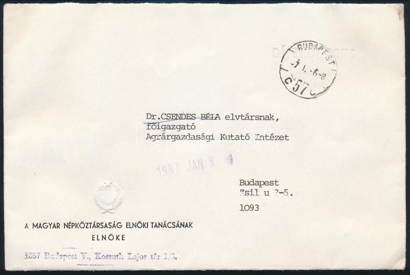Beschreibung: 1987 Losonci Pál államfő autográf aláírása hivatalos levélen