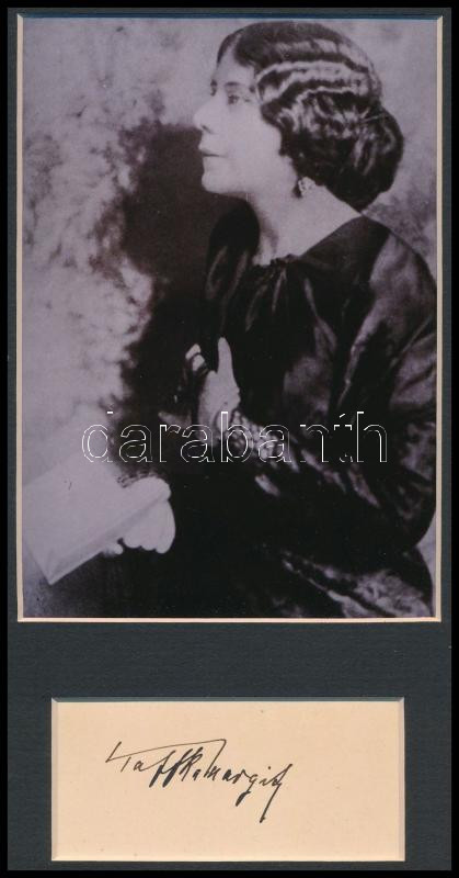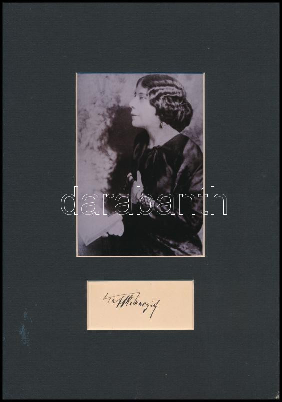 Beschreibung: Kaffka Margit (1880-1918) írónő autográf aláírása modern fotóval installálva