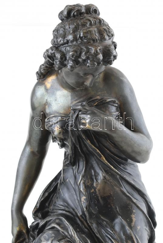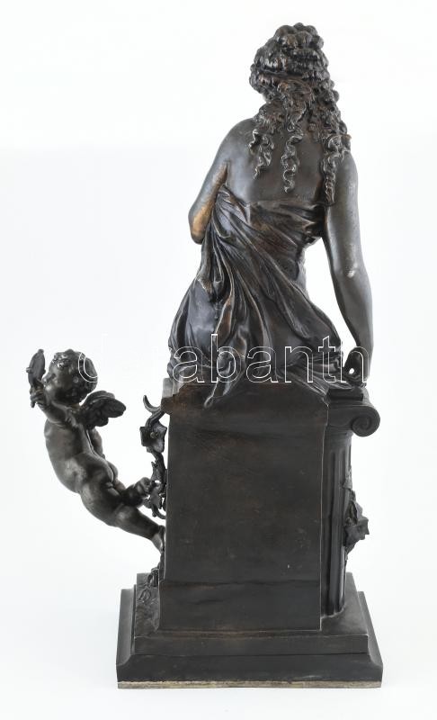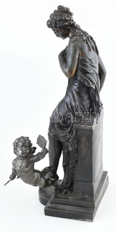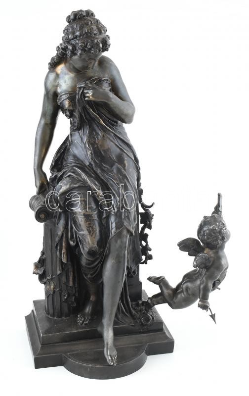Jelzés nélkül: Cupido és Psziché. Spiáter. Korának megfelelő állapotban. m: 55 cm / Unmarked: Cupid and Psyche. Zamac. In good condition for its age. m: 55 cm