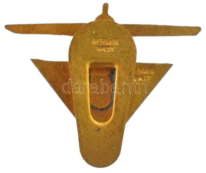 1939. "VI. M.P.P (VI. Magyar Pilóta Piknik) - 1939" zománcozott bronz jelvény, két helyen "BERÁN N BPEST" gyártói jelzéssel a hátoldalon (23x29mm) T:1- / Hungary 1939. "VI. M.P.P. (6th Hunarian Pilot Picnic) - 1939" enamelled bronze badge with "BERÁN N BPEST" maker's mark at two places (23x29mm) C:AU