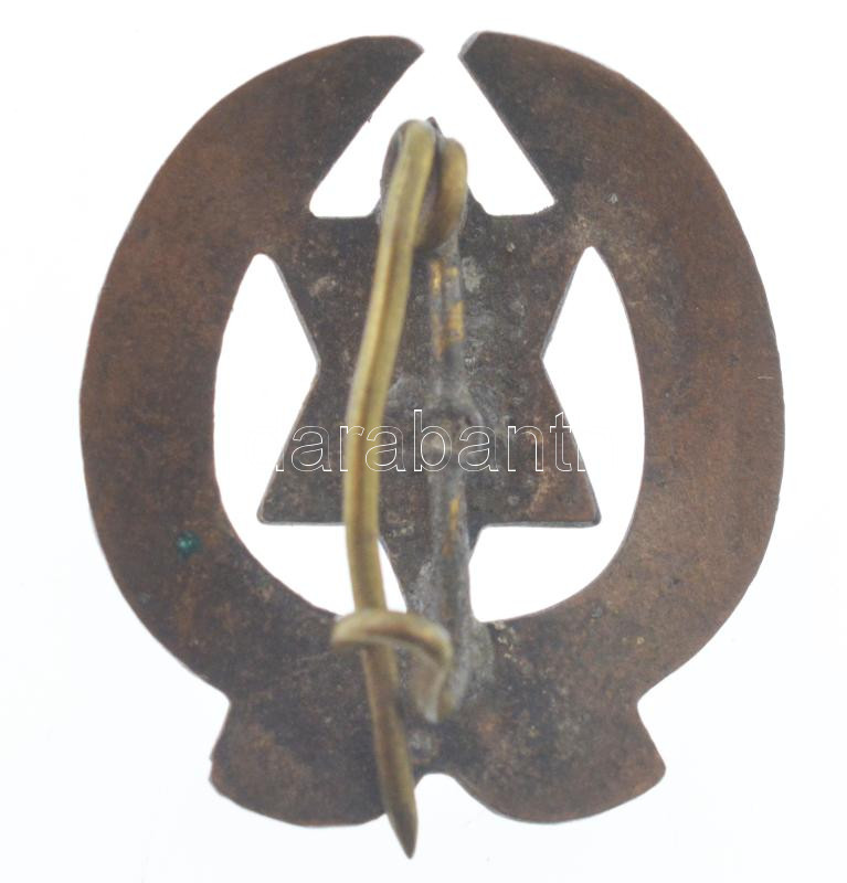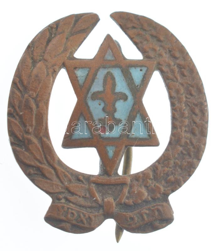 ~1930. Részben zománcozott bronz zsidó cserkész jelvény (23x21mm) T:2 kissé hajlott lemez / ~1930. Partially enamelled bronze jewish scout badge (23x21mm) C:XF slightly bent