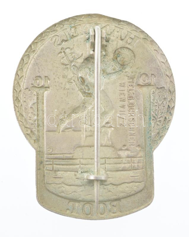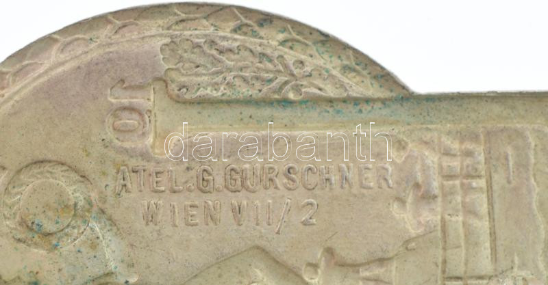 Beschreibung: Osztrák-Magyar Monarchia 1916. "Kereskedelmi tengeralattjáró 1916" ezüstözött fém sapkajelvény, hátlapon "ATEL.G.GURSCHNER WIEN VII/2" (39x31mm) T:1- / Austro-Hungarian Monarchy 1916. "1HANDELS U-BOOT 1916" silver plated metal cap badge "ATEL.G.GURSCHNER WIEN VII/2" (39x31mm) C:AU