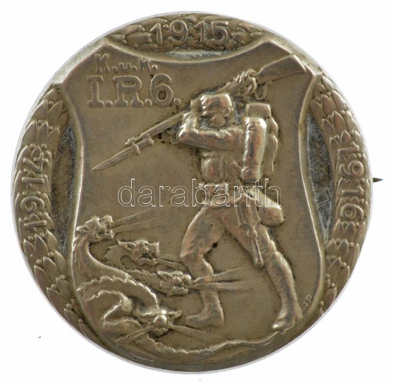Osztrák-Magyar Monarchia 1916. "K.u.K. I.R. 6." a szabadkai Császári és Királyi 6. Gyalogezred sapkajelvénye (~31-32mm) T:1-,2 / Austro-Hungarian Monarchy 1916. "K.u.K. I.R. 6." cap badge of the Subotica 6th Infantry Regiment (~31-32mm) C:AU,XF