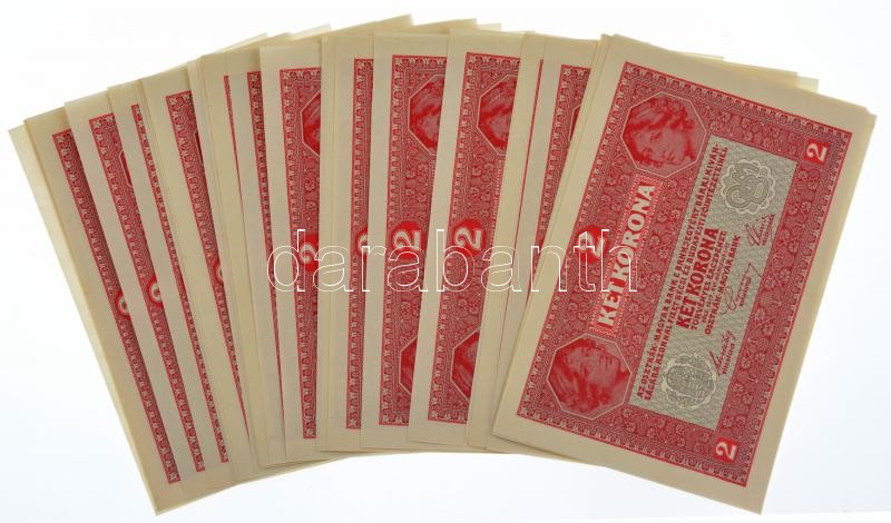 1917. 2K (29x), zöld "DEUTSCHÖSTERREICH" felülbélyegzéssel, ... https://www.darabanth.com/de/39-Gross-Auktion/39.1/Numismatik/Ungarische-Banknoten~16016/1917-2K-29x-zold-DEUTSCHOSTERREICH-felulbelyegzessel-sorszamkovetok-1701-004433-17~II2728017