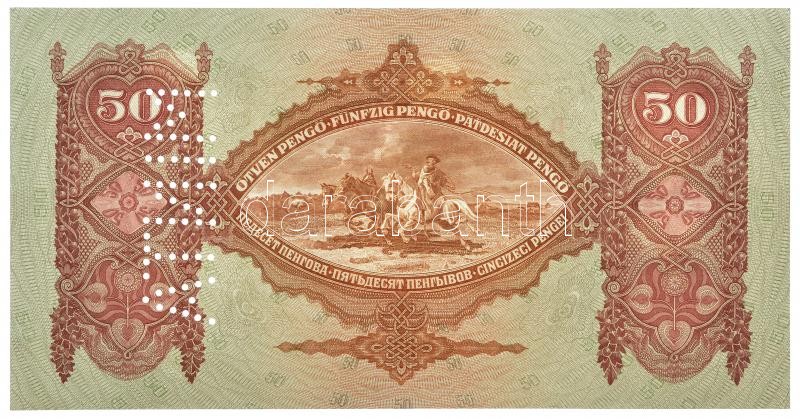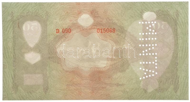 1932. 50P előlapi fázisnyomat "MINTA" perforációval és "D 090 015088" sorozat és sorszámmal T:UNC / Hungary 1932. 50 Pengő front side phase print, with MINTA (SPECIMEN) perforation and "D 090 015088" serial number C:UNC