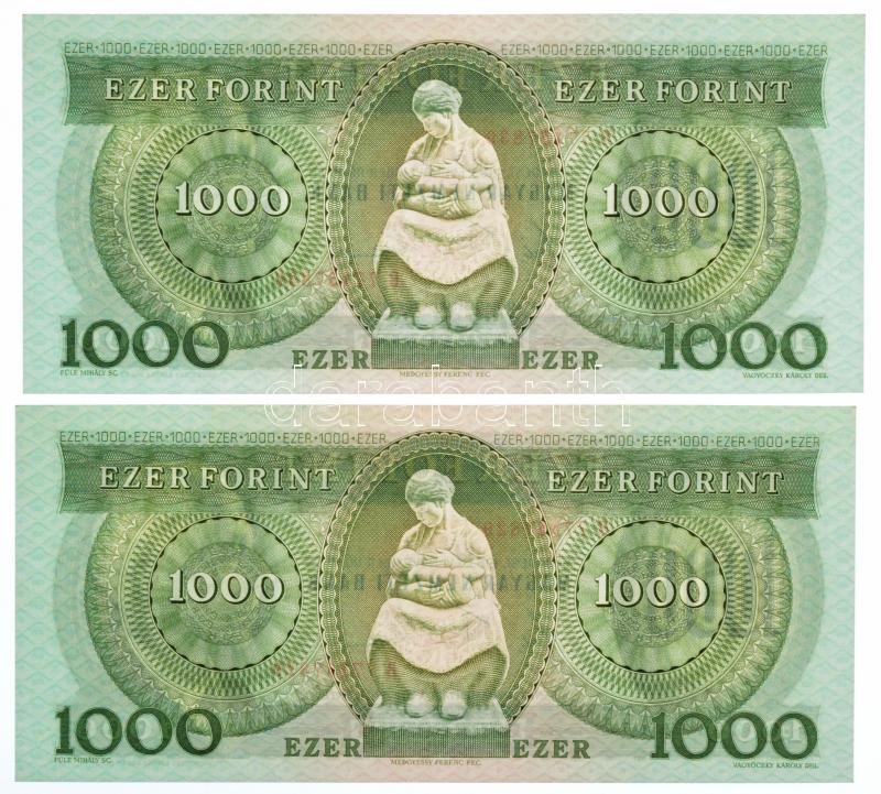 Beschreibung: 1983. november 10. 1000Ft (2x) sorszámkövetők "B 77157829 - B 77157830" T:I,I- / Hungary November 10,1983 1000 Forint (2x) consecutive serials "B 77157829 - B 77157830" C:UNC,AU Adamo F45