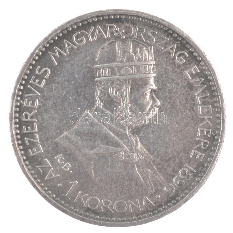 1896KB 1K Ag "Millennium" eredeti sötétbarna "Millenniumi Koronaérem - 1896" díszdobozban, Körmöcbánya (5,02g) T:1- patina / Hungary 1896KB 1 Korona Ag "Millennium" in original, dark brown case, Kremnic (5,02g) C:AU patina Adamo K5.2