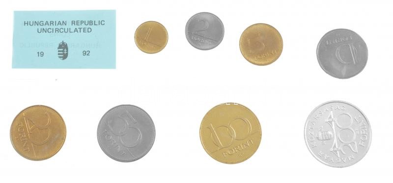 1992. 1Ft-200Ft (8xklf) érmés forgalmi sor lezárt fóliatokban T:1 / Hu... https://www.darabanth.com/de/39-Gross-Auktion/39.1/Numismatik/Ungarische-Munzen-und-Munzen-mit-ungarischem-Munzzeichen~16017/1992-1Ft-200Ft-8xklf-ermes-forgalmi-sor-lezart-foliatokban-T1-Hungary-1992-1-Forint-200~II2708353
