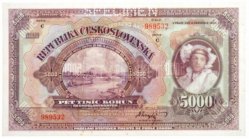 Csehszlovákia 1920. 5000K "SPECIMEN" perforációval, "C ... https://www.darabanth.com/de/39-Gross-Auktion/39.1/Numismatik/Weltweit-Banknoten~16020/Csehszlovakia-1920-5000K-SPECIMEN-perforacioval-C-989532-TI-Czechoslovakia-1920-5000-Ko~II2719106
