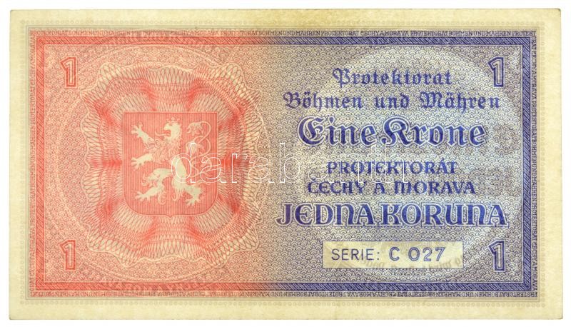 Német Harmadik Birodalom / Cseh-Morva Protektorátus 1940. 1K "C 027" T:II / German Third Reich / Protectorate of Bohemia and Moravia 1940. 1 Korun "C 027" C:XF