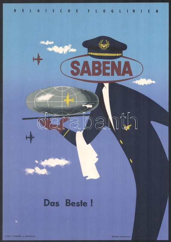 "Sabena Das Beste!", Sabena belga légitársaság reklámplakátj... https://www.darabanth.com/de/39-Gross-Auktion/39.1/Poster/Poster~16388/Sabena-Das-Beste-Sabena-belga-legitarsasag-reklamplakatja-Bruxelles-Linsmo-SA-ny-34~II2739764