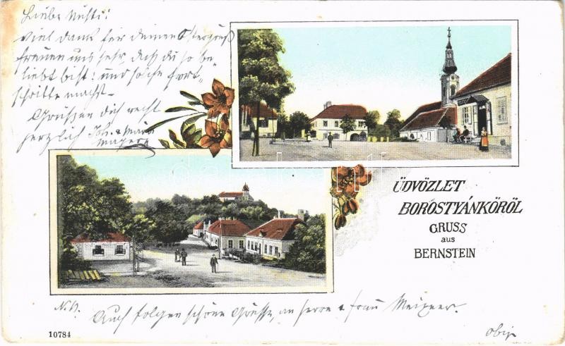 1907 Borostyánkő, Bernstein; Platz, Kirche / tér, templom / square, ch... https://www.darabanth.com/de/390-Fernauktion/390.0/Ansichtskarten/Burgenland~1500013/1907-Borostyanko-Bernstein-Platz-Kirche-ter-templom-square-church-Art-Nouveau-floral~II2349897