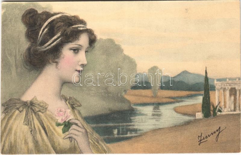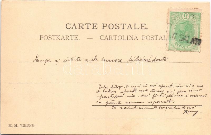 Beschreibung: Lady art postcard. M. M. Vienne. artist signed