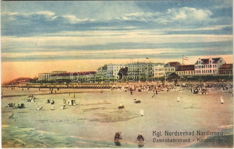 Norderney, Damenbadestrand, Kaiserstraße / beach, bathers https://www.darabanth.com/de/390-Fernauktion/390.0/Ansichtskarten/Deutschland~1500082/Norderney-Damenbadestrand-KaiserstraC39Fe-beach-bathers~II2348134