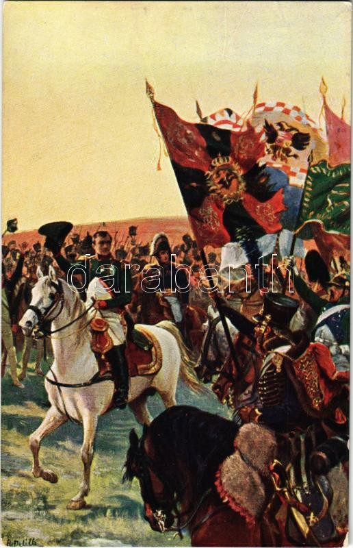 Napoleon die Standarten grüssend /Napoleon greets the flags, artist signed (EK)
