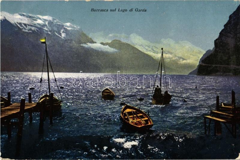Lago di Garda, Burrasca / boats (worn corners) https://www.darabanth.com/de/390-Fernauktion/390.0/Ansichtskarten/Italien~1500089/Lago-di-Garda-Burrasca-boats-worn-corners~II2128826