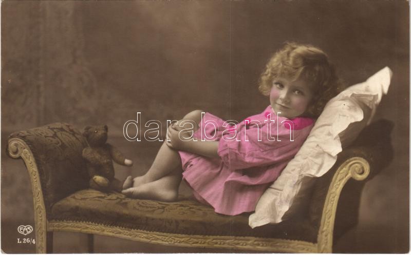 Girl with teddy bear. EAS L26/4 https://www.darabanth.com/de/390-Fernauktion/390.0/Ansichtskarten/Kinder~1500044/Girl-with-teddy-bear-EAS-L264~II2344152