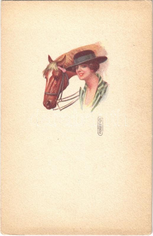 Beschreibung: Lady with horse. Italian lady art postcard. 488M-2. s: Colombo (EK)