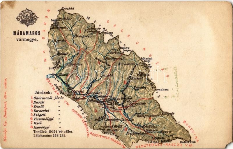Máramaros vármegye térképe. Kiadja Károlyi Gy. / Map of Maramures coun... https://www.darabanth.com/de/390-Fernauktion/390.0/Ansichtskarten/Landkarte~1500092/Maramaros-varmegye-terkepe-Kiadja-Karolyi-Gy-Map-of-Maramures-county-EM~II2130436