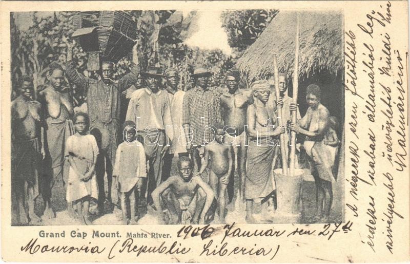 1906 Grand Cape Mount, Mahfa River / African folklore https://www.darabanth.com/de/390-Fernauktion/390.0/Ansichtskarten/Liberien~1500068/1906-Grand-Cape-Mount-Mahfa-River-African-folklore~II2350408