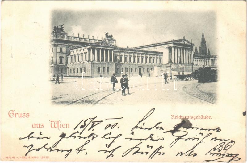 1900 Wien, Vienna, Bécs; Reichsratsgebäude / parliament https://www.darabanth.com/de/390-Fernauktion/390.0/Ansichtskarten/Osterreich~1500019/1900-Wien-Vienna-Becs-Reichsratsgebaude-parliament~II2349093