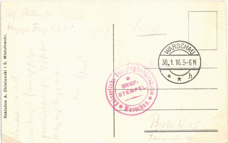 Beschreibung: 1916 Warszawa, Warsaw; Kosciól Sw. Aleksandra / street view, church, tram + "Kaiserliche Telegraphendirektion Warschau" (from postcard booklet) (EB)