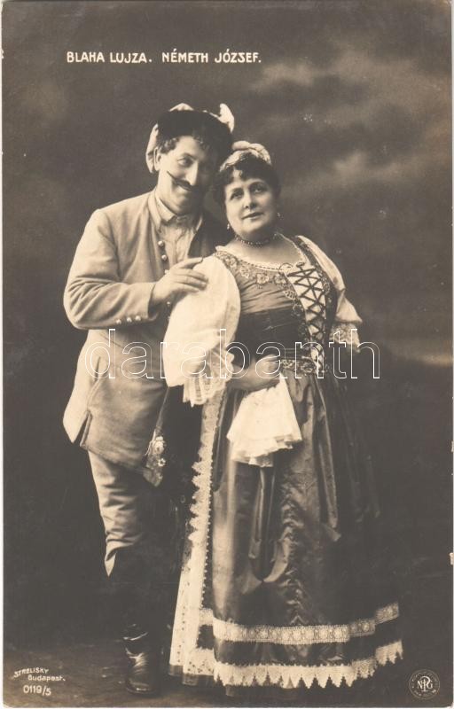 Blaha Lujza, Németh József. Strelisky Budapest 011/5. https://www.darabanth.com/de/390-Fernauktion/390.0/Ansichtskarten/Schauspieler-Schauspielerin~1500088/Blaha-Lujza-Nemeth-Jozsef-Strelisky-Budapest-0115~II2351986