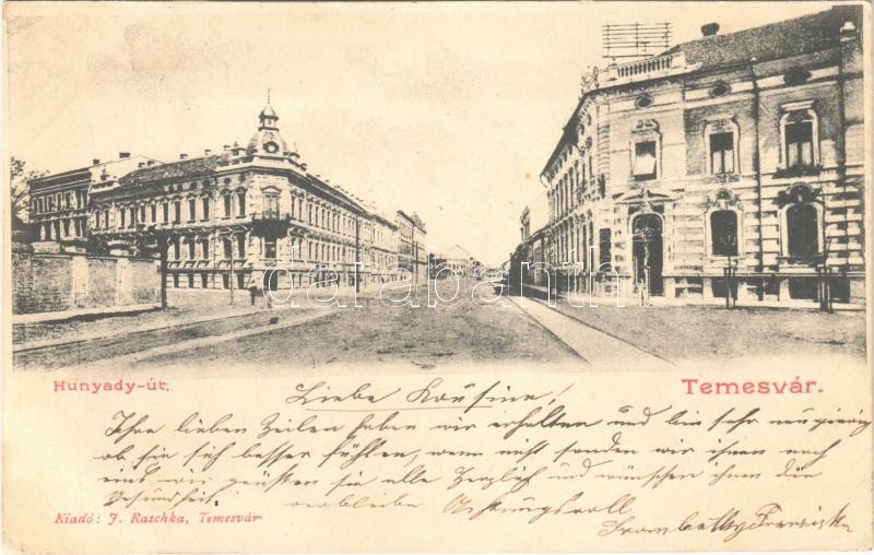 1902 Temesvár, Timisoara; Hunyady út. J. Raschka kiadása / street https://www.darabanth.com/de/390-Fernauktion/390.0/Ansichtskarten/Siebenburgen~1500005/1902-Temesvar-Timisoara-Hunyady-ut-J-Raschka-kiadasa-street~II2351515
