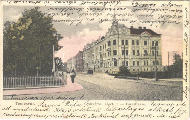 1905 Temesvár, Timisoara; Gyárváros, Liget út / Fabrica, street https://www.darabanth.com/de/390-Fernauktion/390.0/Ansichtskarten/Siebenburgen~1500005/1905-Temesvar-Timisoara-Gyarvaros-Liget-ut-Fabrica-street~II2352086