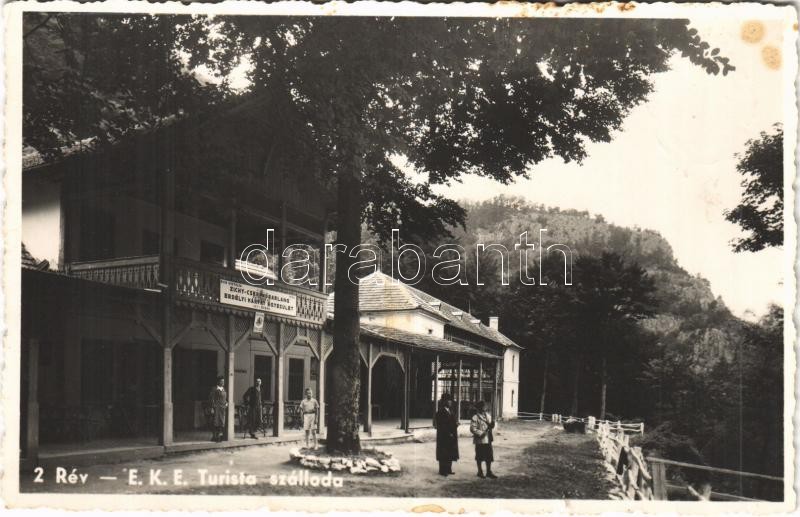 Beschreibung: 1941 Rév, Körösrév, Vad, Vadu Crisului; Zichy cseppkőbarlang, EKE (Erdélyi Kárpát Egyesület) Turista szálloda, menedékház / Pestera Vadu Crisului / tourist hotel near the stalactite cave (fl)