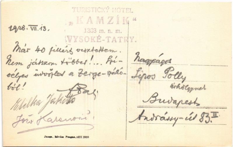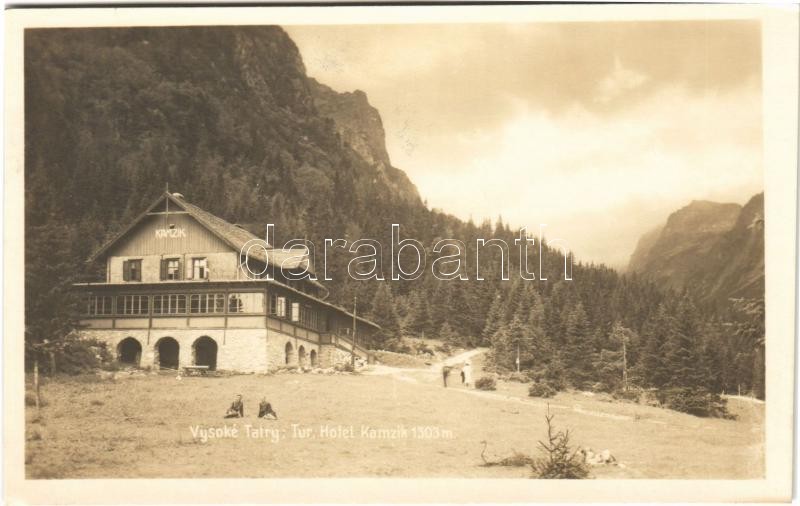 1928 Tátra, Magas-Tátra, Vysoké Tatry; Hotel Kamzík / Zerge szálló, me... https://www.darabanth.com/de/390-Fernauktion/390.0/Ansichtskarten/Slowakei~1500007/1928-Tatra-Magas-Tatra-Vysoke-Tatry-Hotel-Kamzik-Zerge-szallo-menedekhaz-chalet-tou~II2343852