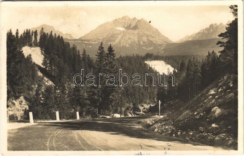 Beschreibung: 1936 Tátra, Magas-Tátra, Vysoké Tatry; Gerlachovsky stít / Gerlsdorfer Spitze / Gerlachfalvi-csúcs / mountain peak, road (EK)