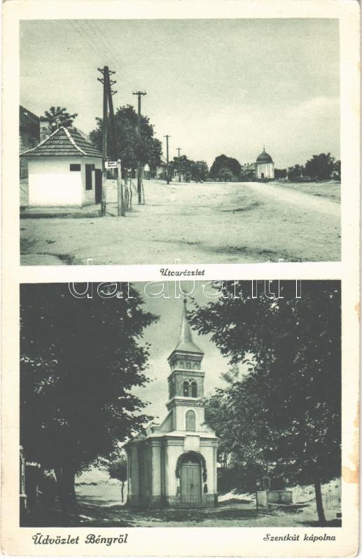 Beschreibung: Bény, Bína; utca, Szentkút kápolna / street, chapel (fl)