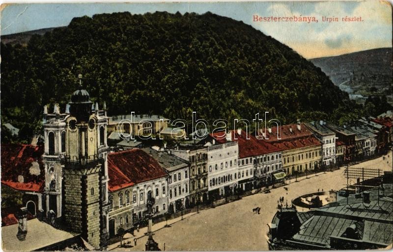 Besztercebánya, Banská Bystrica; Fő tér az Urpin-heggyel / main square... https://www.darabanth.com/de/390-Fernauktion/390.0/Ansichtskarten/Slowakei~1500007/Besztercebanya-Banska-Bystrica-Fo-ter-az-Urpin-heggyel-main-square-shops-Rb~II2130895