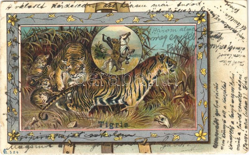 1900 Tigris / Tiger. Art Nouveau, floral, litho (EK) https://www.darabanth.com/de/390-Fernauktion/390.0/Ansichtskarten/Tierwelt~1500037/1900-Tigris-Tiger-Art-Nouveau-floral-litho-EK~II2346995