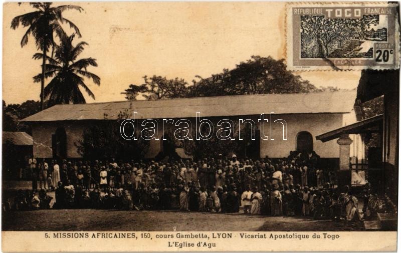 1932 Missions Africaines, 150, cours Gambetta, Lyon - Vicariat Apostol... https://www.darabanth.com/de/390-Fernauktion/390.0/Ansichtskarten/Togo~1500108/1932-Missions-Africaines-150-cours-Gambetta-Lyon-Vicariat-Apostolique-du-Togo-LEglise-dAgu-~II2128447