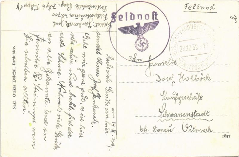 1939 Pardubice, Kunetická Hora / castle + Feldpost (EK) https://www.darabanth.com/de/390-Fernauktion/390.0/Ansichtskarten/Tschechische-Republik~1500026/1939-Pardubice-Kuneticka-Hora-castle-plus-Feldpost-EK~II2349471
