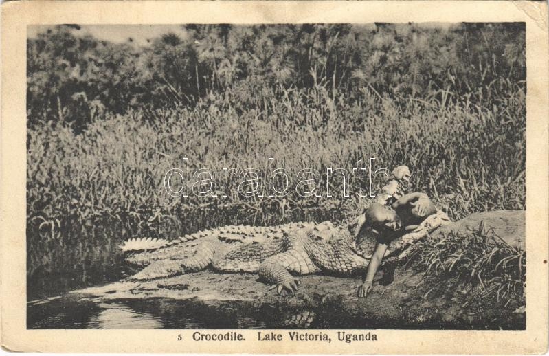 1928 Lake Victoria, Crocodile (EK) https://www.darabanth.com/de/390-Fernauktion/390.0/Ansichtskarten/Uganda~1500111/1928-Lake-Victoria-Crocodile-EK~II2345400
