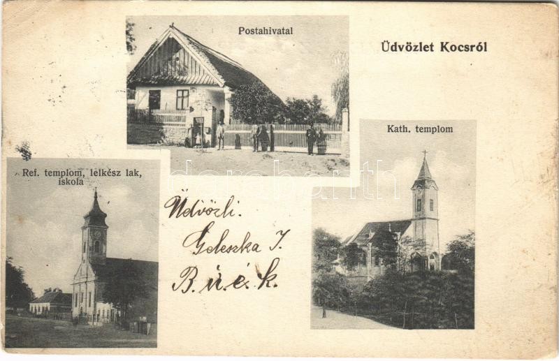 1905 Kocs, postahivatal, Katolikus templom, Református templom, lelkés... https://www.darabanth.com/de/390-Fernauktion/390.0/Ansichtskarten/Ungarn~1500004/1905-Kocs-postahivatal-Katolikus-templom-Reformatus-templom-lelkesz-lak-es-iskola-EK~II2349639