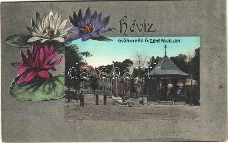 1908 Hévíz, Györgyház és zenepavilon, automobil. Art Nouveau, lótuszvi... https://www.darabanth.com/de/390-Fernauktion/390.0/Ansichtskarten/Ungarn~1500004/1908-Heviz-Gyorgyhaz-es-zenepavilon-automobil-Art-Nouveau-lotuszvirag-Merei-Ignac-kiad~II2349556