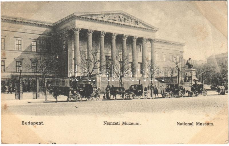 Budapest VIII. Nemzeti Múzeum, lovaskocsik, fiákerek https://www.darabanth.com/de/390-Fernauktion/390.0/Ansichtskarten/Ungarn~1500004/Budapest-VIII-Nemzeti-Muzeum-lovaskocsik-fiakerek~II2345505