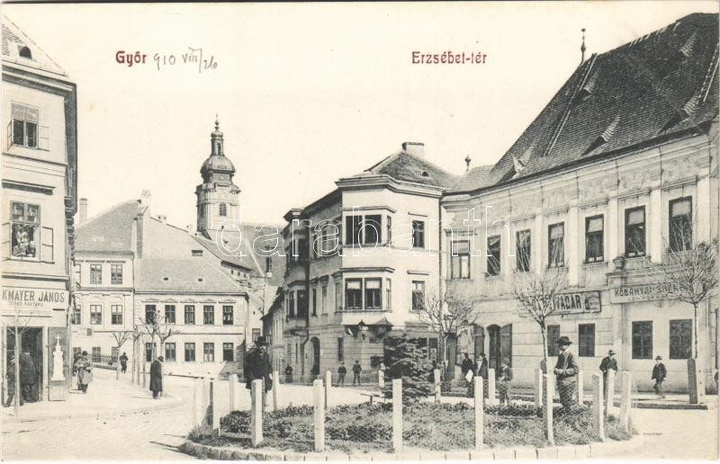Beschreibung: Győr, Erzsébet tér, Kőbányai sörfőraktár, Róth Tivadar üzlete, Birkmayer János sírkő raktár. Herman Izidor 904.