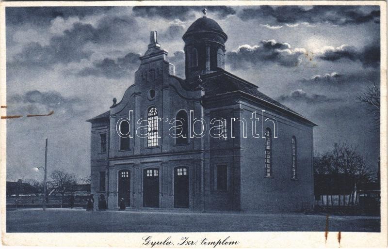 Gyula, Izraelita templom, zsinagóga, este https://www.darabanth.com/de/390-Fernauktion/390.0/Ansichtskarten/Ungarn~1500004/Gyula-Izraelita-templom-zsinagoga-este~II2349644