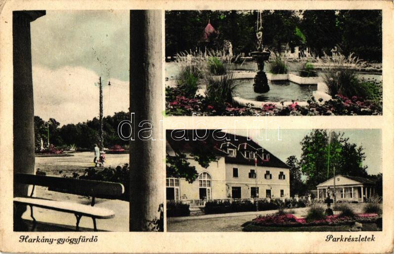 Beschreibung: Harkány-gyógyfürdő, Parkrészletek, kiadja Szilczer Gyula (EB)